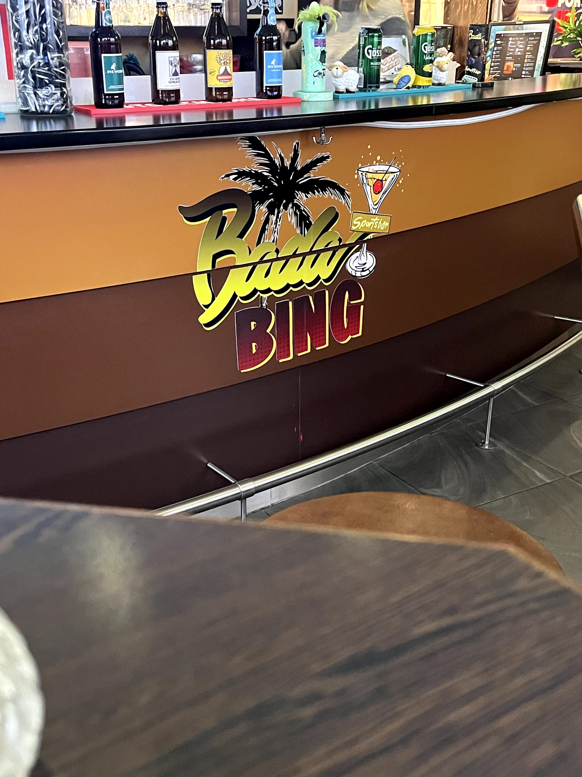 We thought we found a place to catch the birds again, funny enough called Bada Bing Sports Bar (yes named after the Sopranos one). The Hungarian bartender was a character and she did not have very good English.