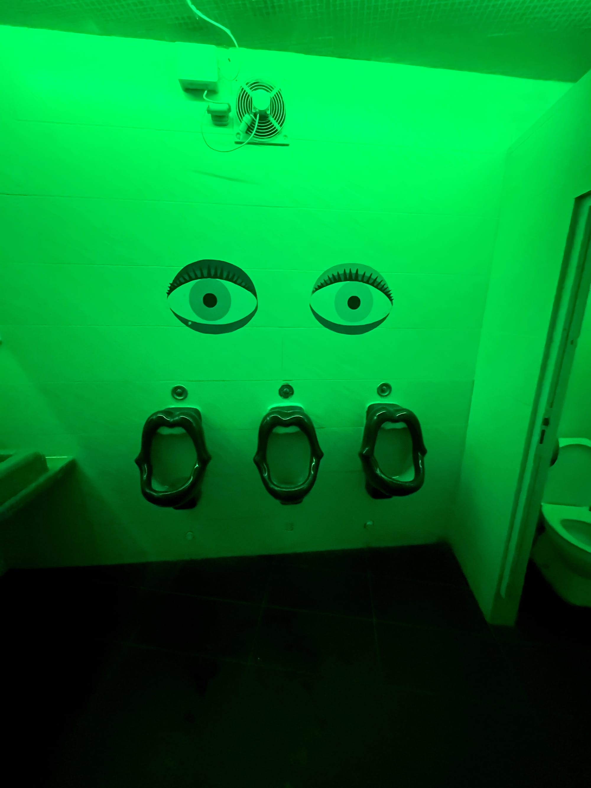 I went out with a squad for a while last night to this divey club called Ibiza Rocks Bar where a British guy playing acoustic singing Don’t Look Back in Anger drew us in. He had a full choir with him. The Brits are louder than the Americans over here and I can hear them from a block away. It was a funny nightcap singing along with them. (Ibiza bathroom pic)