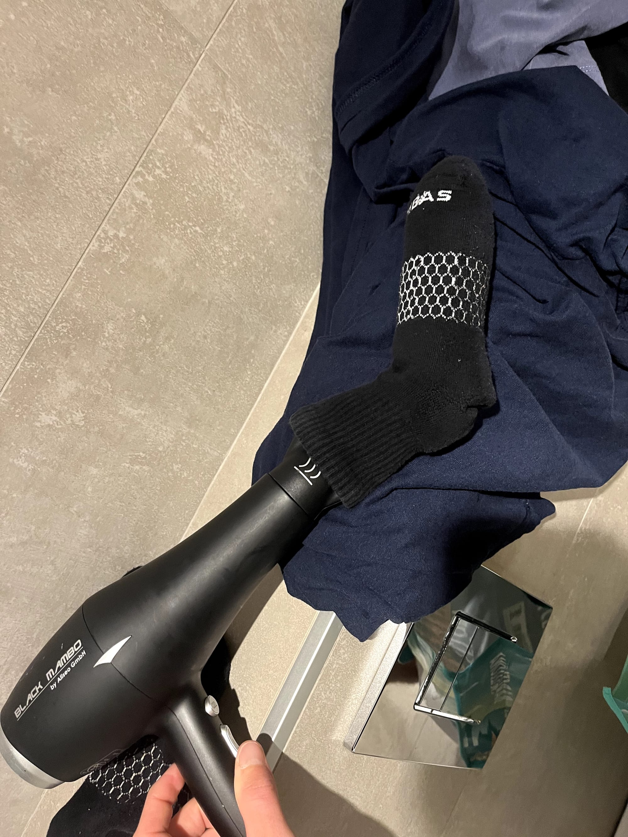Here’s me making due in a rush after the laundromat dryer didn't have the juice:
