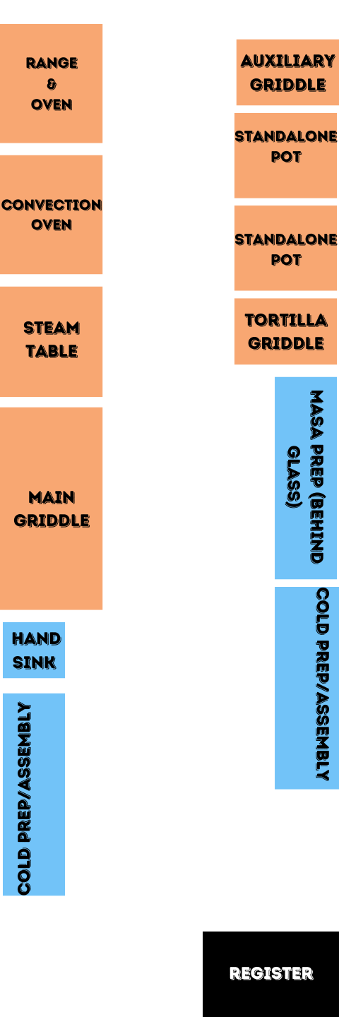 The processes listed below are what I envision for a TUCKEDito storefront. Neither of us have ever run a kitchen, so not sure what to expect.
