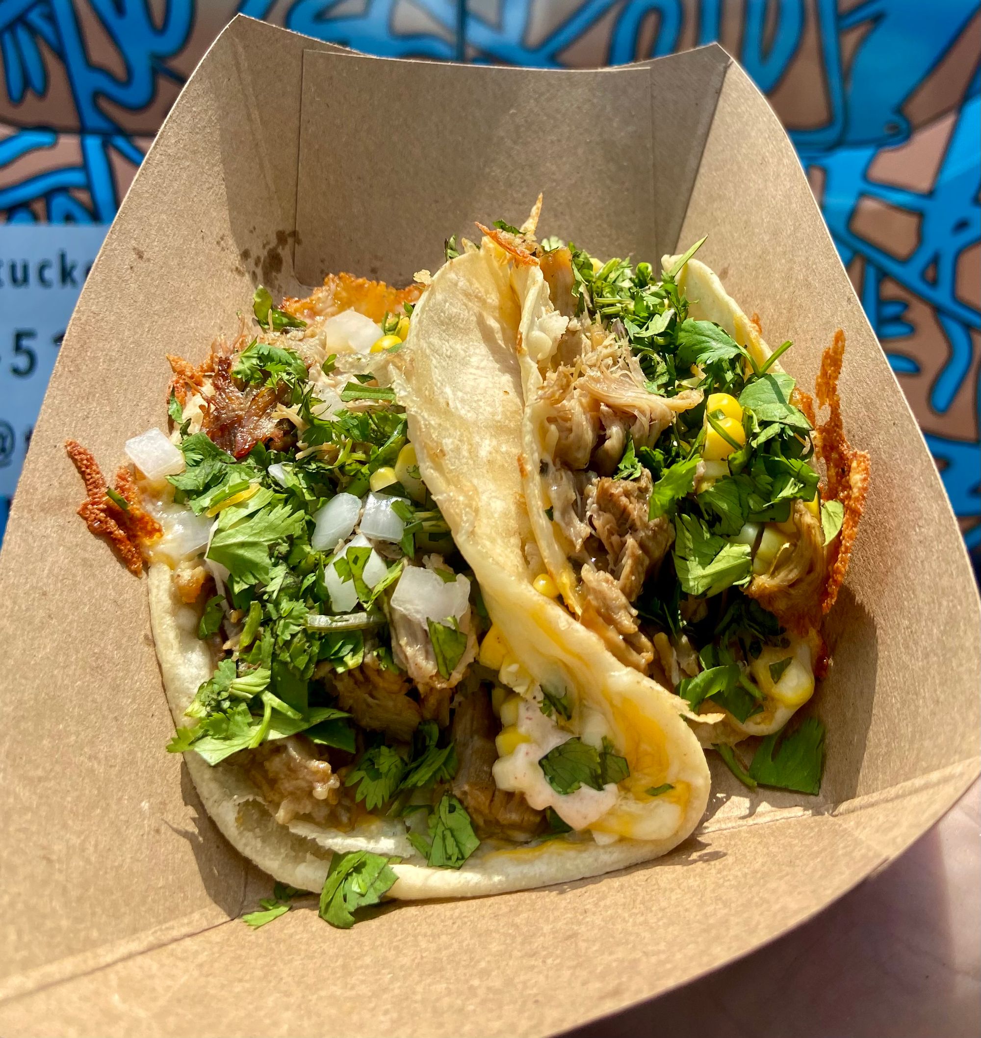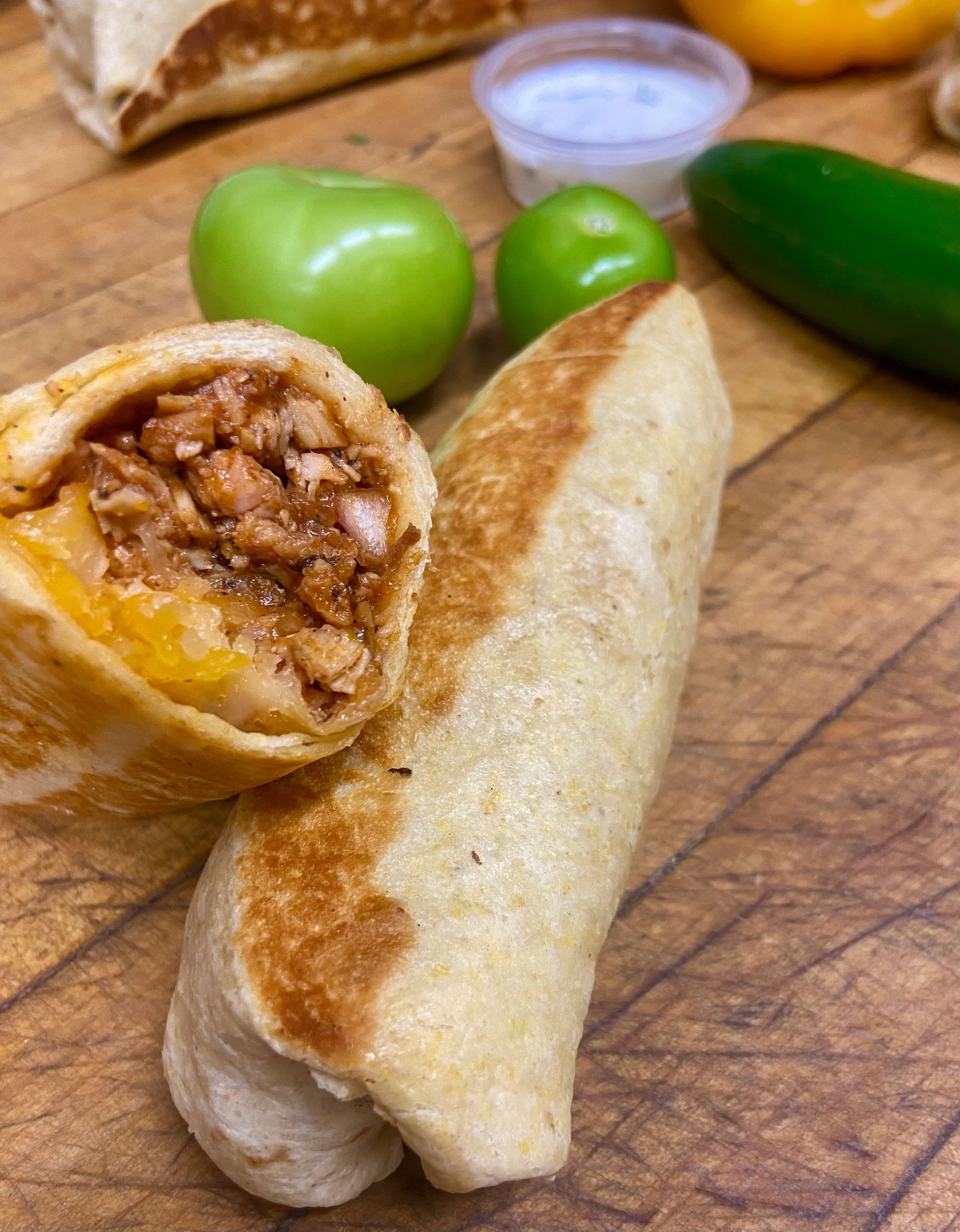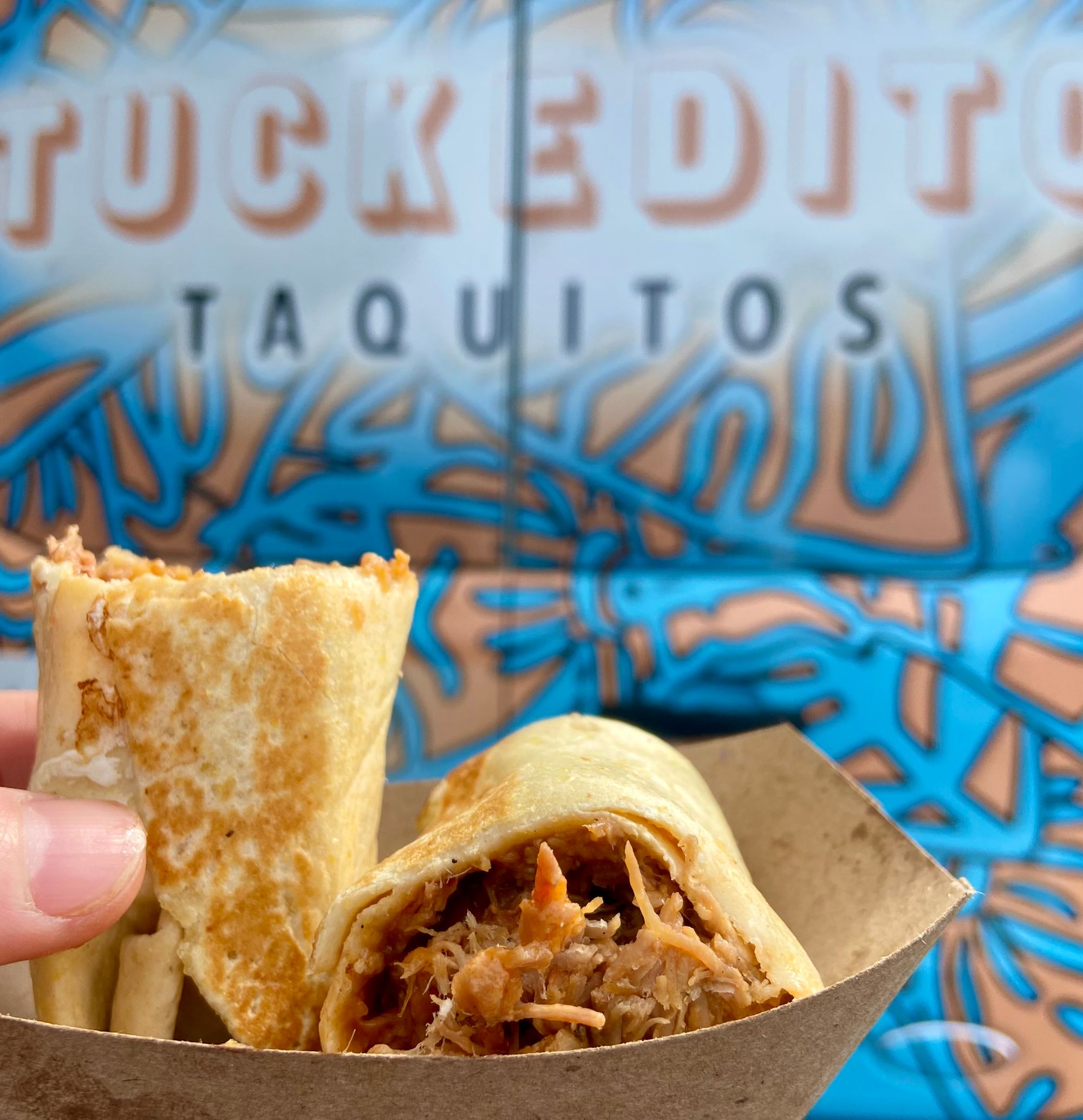 Tuckeditos, our own take on a traditional taquito, are our main product. We have developed 10 flavors since starting and offer a choice of 6 flavors when we’re serving. We always have 4 house-made side sauces available. On occasion we serve tacos and tostadas.