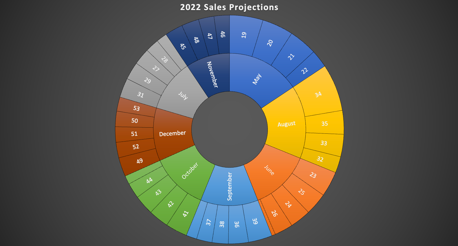 A Sunburst chart of our 2022 sales projections