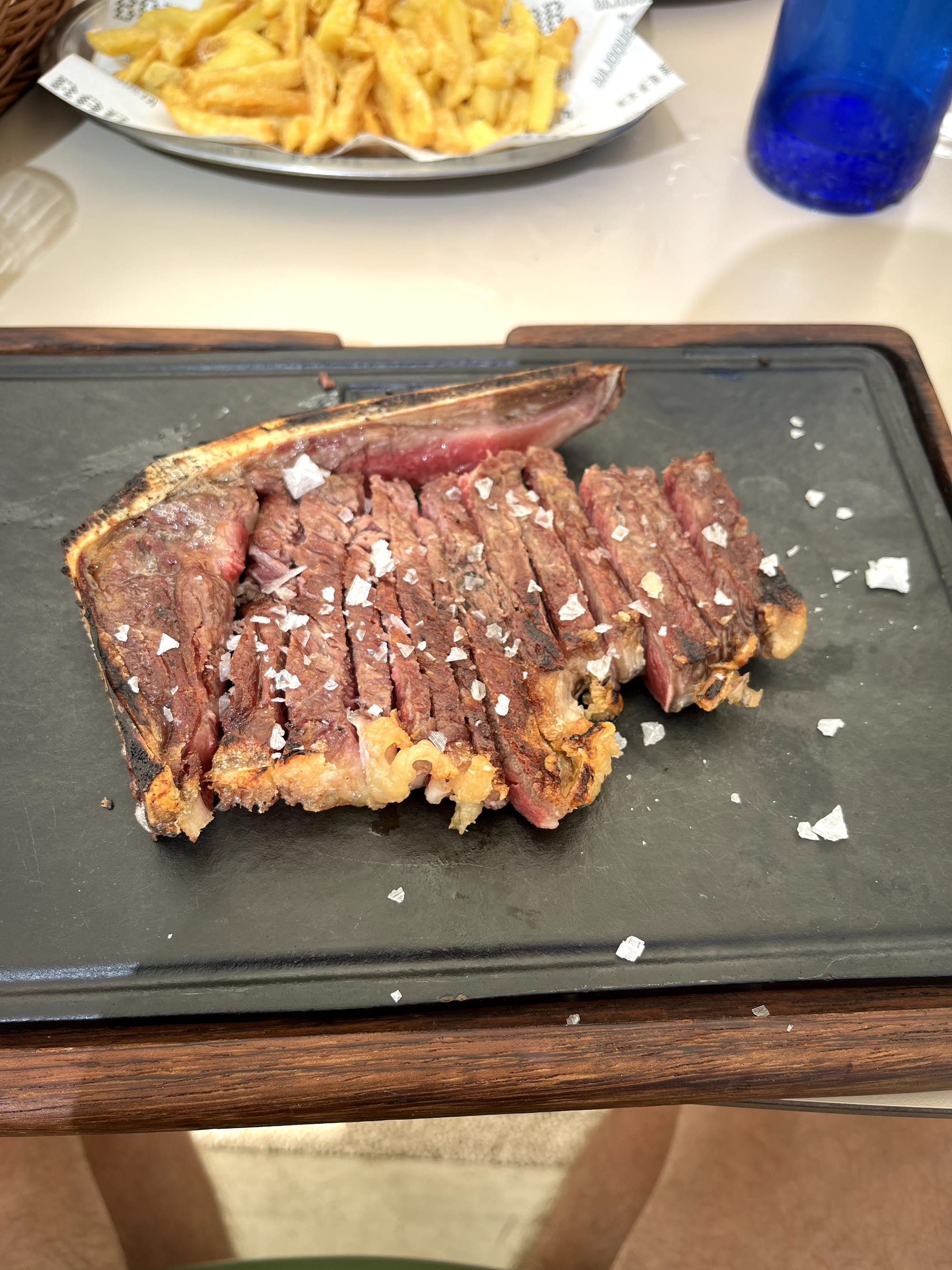 We left that paradise by the bay and rode up the coast to Valencia. I was starving after not wasting any meals on ferry food that looked subpar. Of course there's a terrific restaurant a stones throw away everywhere we've stayed so I had an afternoon steak (entrecot) that was cooked and salted to perfection: