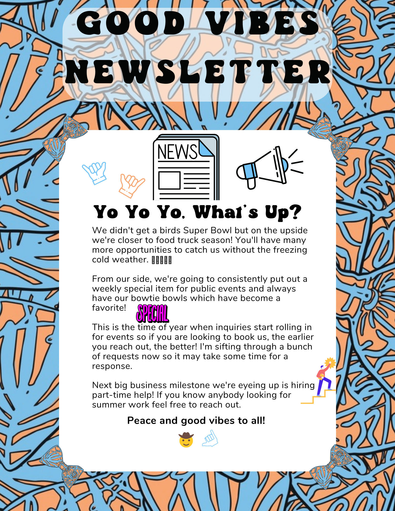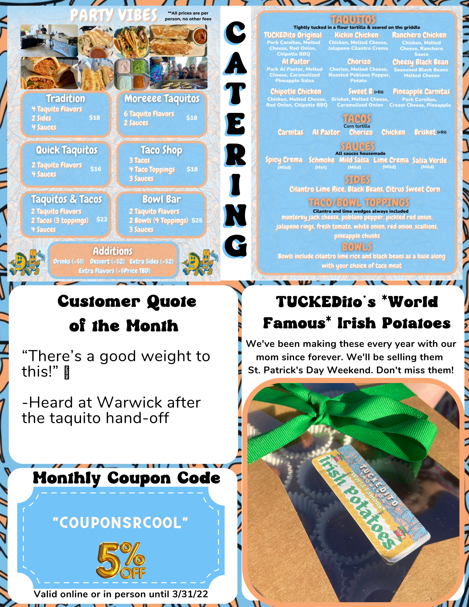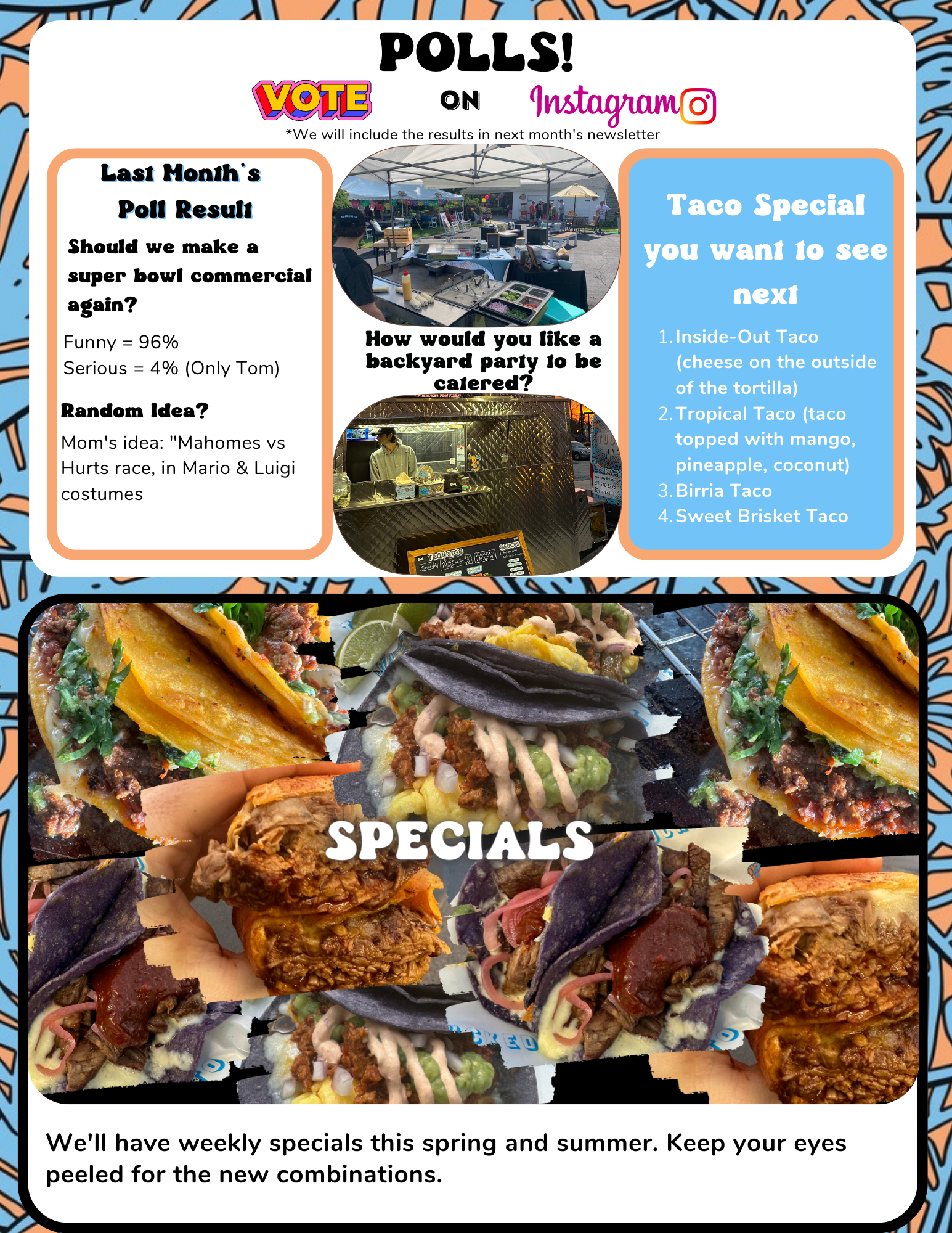 We want to show what we could bring to parties (corporate or casual). We want to bring it to life weekly, for anyone to experience. Tacos make a day better