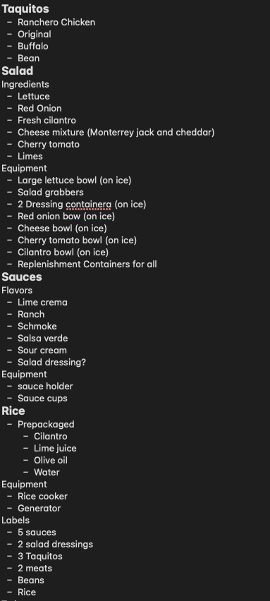 This is the week. We've got our plan and now we're hitting the kitchen with it. Most of our time this week will be prepping food and equipment for our first large catering event!