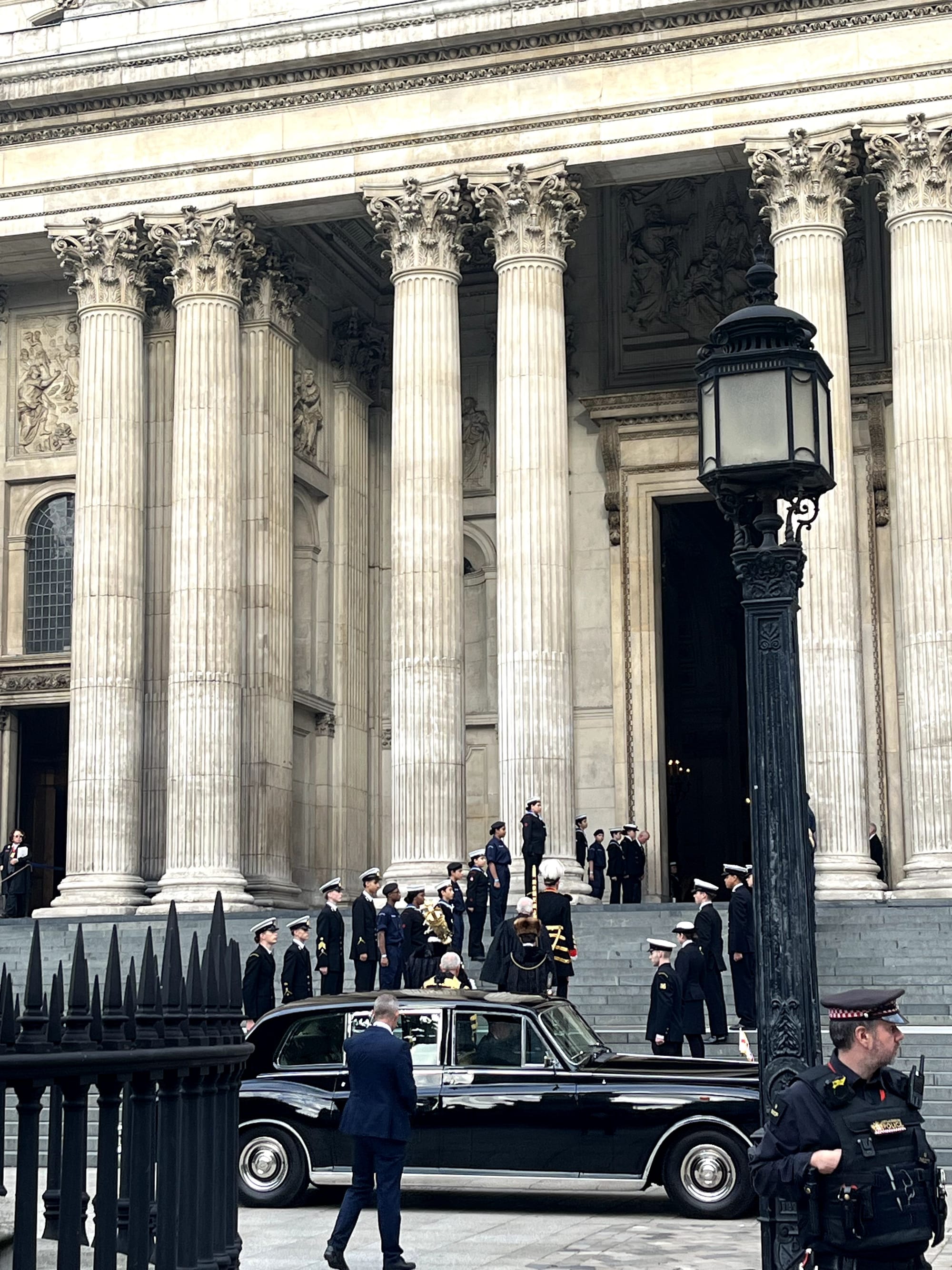 However, we happened to stumble upon some greatness when we went to check out St Paul's Cathedral. The annual Seafarers mass happened to be starting and a crowd was gathering and the security guards kept pushing people back. We heard sirens and knew someone important must be coming. We waited until just before 5 when it was supposed to start and a classic Rolls Royce swerves in with a royally-dressed gentleman. He gets out and stands on the steps clearly awaiting another arrival. The pomp and circumstance was out of control. The next arrival happens to be Princess Anne, the sister of King Charles. I don't know much about the whole royalty scene but it seemed to be a big deal.
